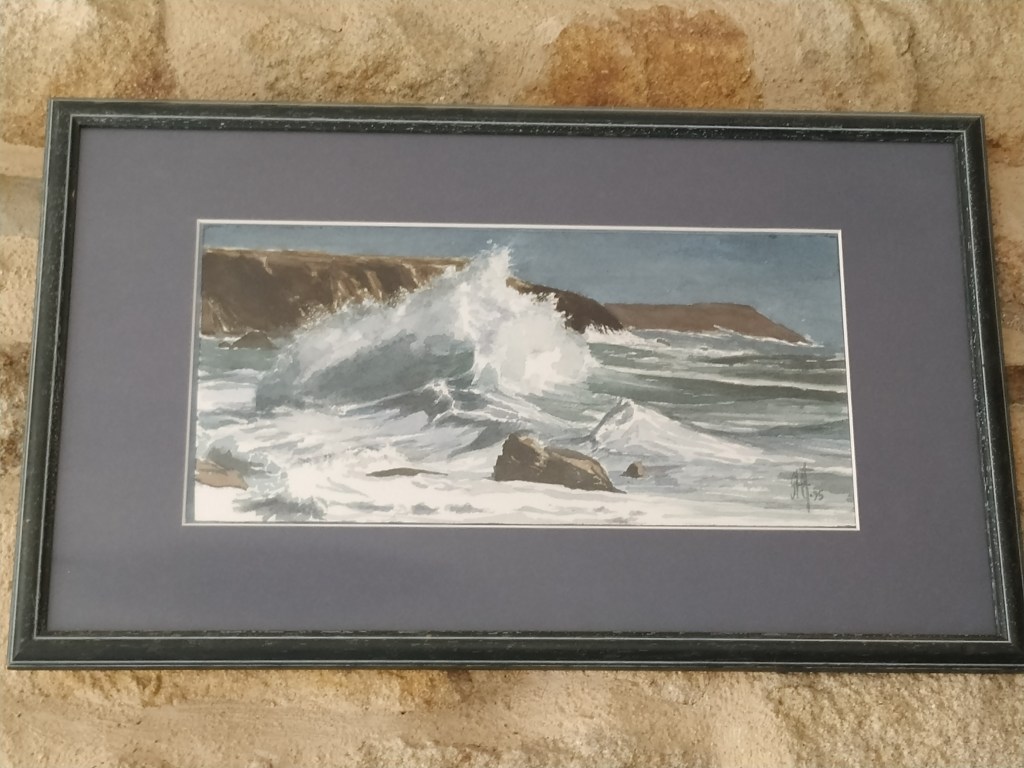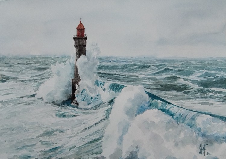 Phare de la vieille, entre Raz et Sein, la plate, Finistère, 1999 Encadré 78×67 Aquarelle 54×43,5 Saint Malo, le sillon, 2019 Célèbre plage de Saint Malo aux abords de la cité corsaire Encadré 65×47 Aquarelle 45×27, papier Moulin de Pombié 330g La Vague, 1995Pointe de Pen Hir, Presqu’île de Crozon, Finistère, 2020 36×25, papier Moulin de Pombié 330gLe Phare de la Vieille, pointe du Raz, 2020Le Mont Saint-Michel, 2020Tour Solidor à Saint Malo, 2020 d’après Joël Simon