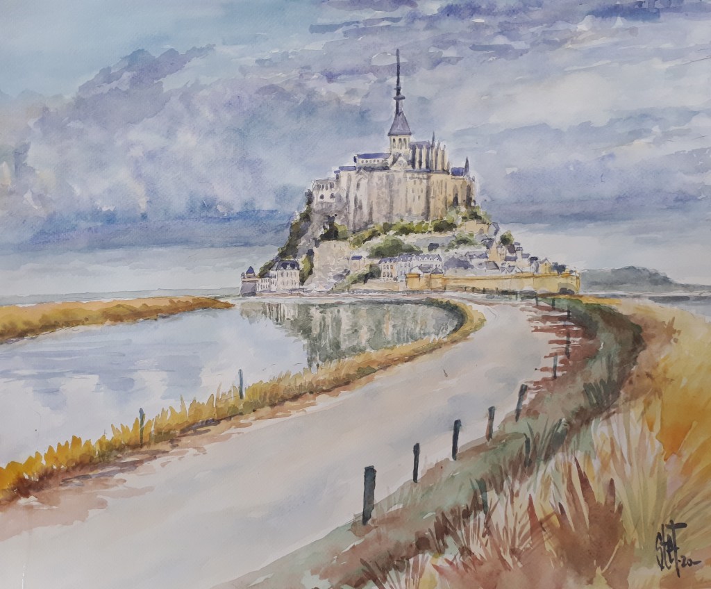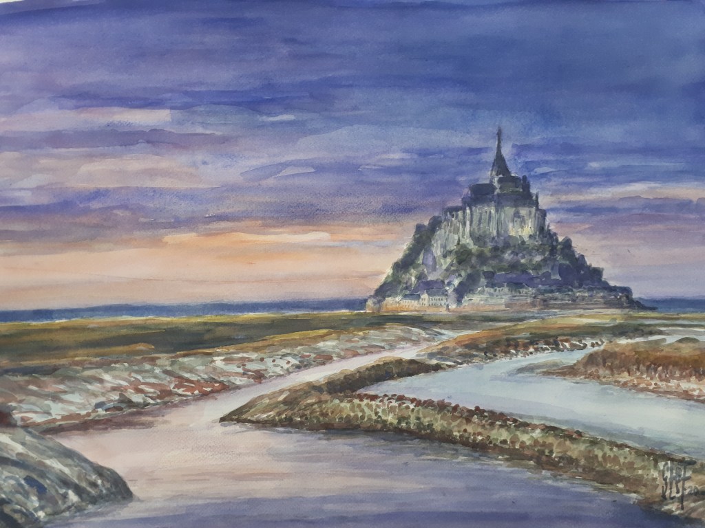 Aquarelle du Mont Saint Michel au crépuscule – 2020