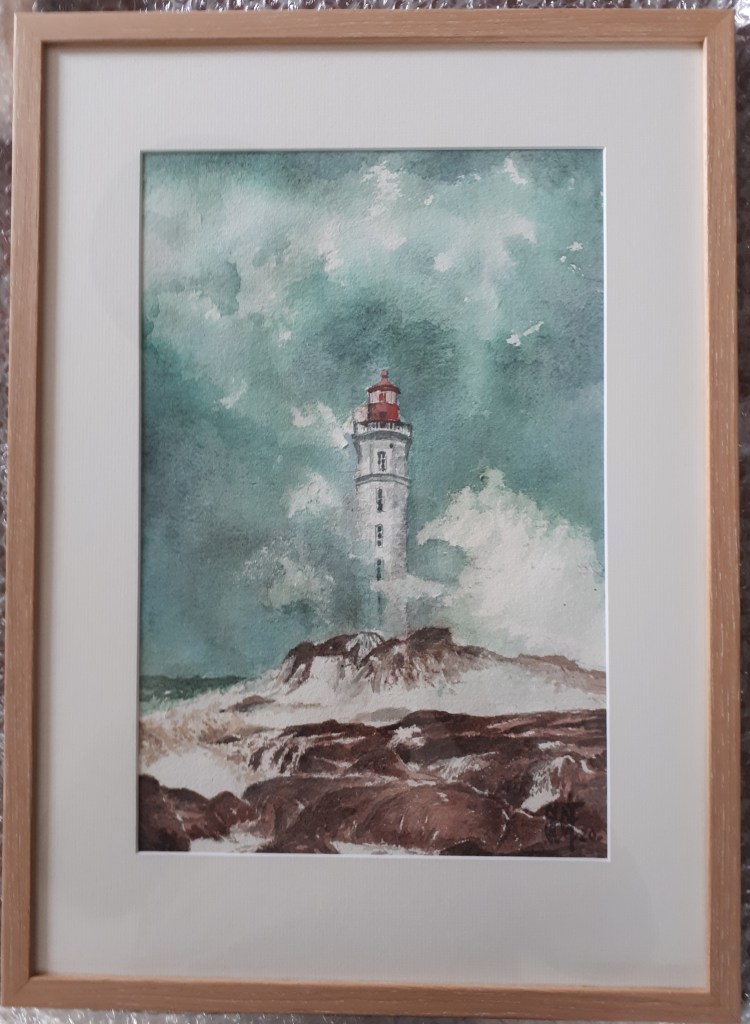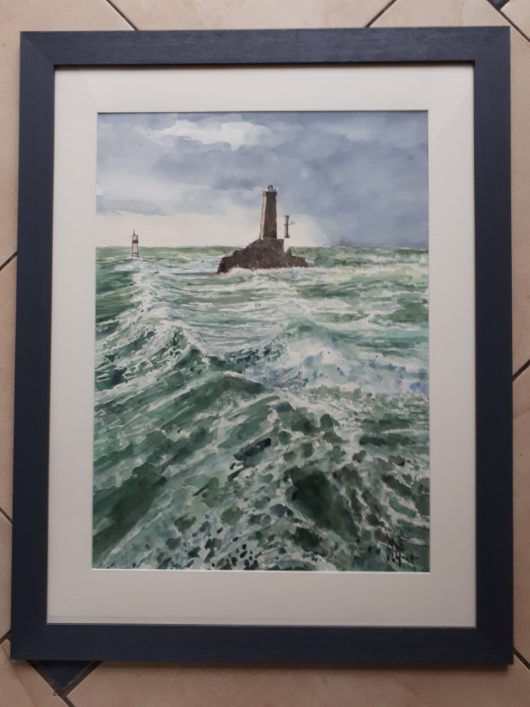C’est parti pour un pas à pas d’aquarelle en quelques étapes. Le sujet : le phare de la vieille et et sa conserve, la Plate. Le sujet n’est pas facile, on fait un grand format, (raisin).